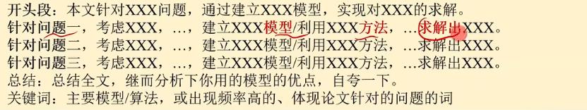 模型就是正文里面的核心模型;XX问题就是赛题的中心词;不要使用修饰词
